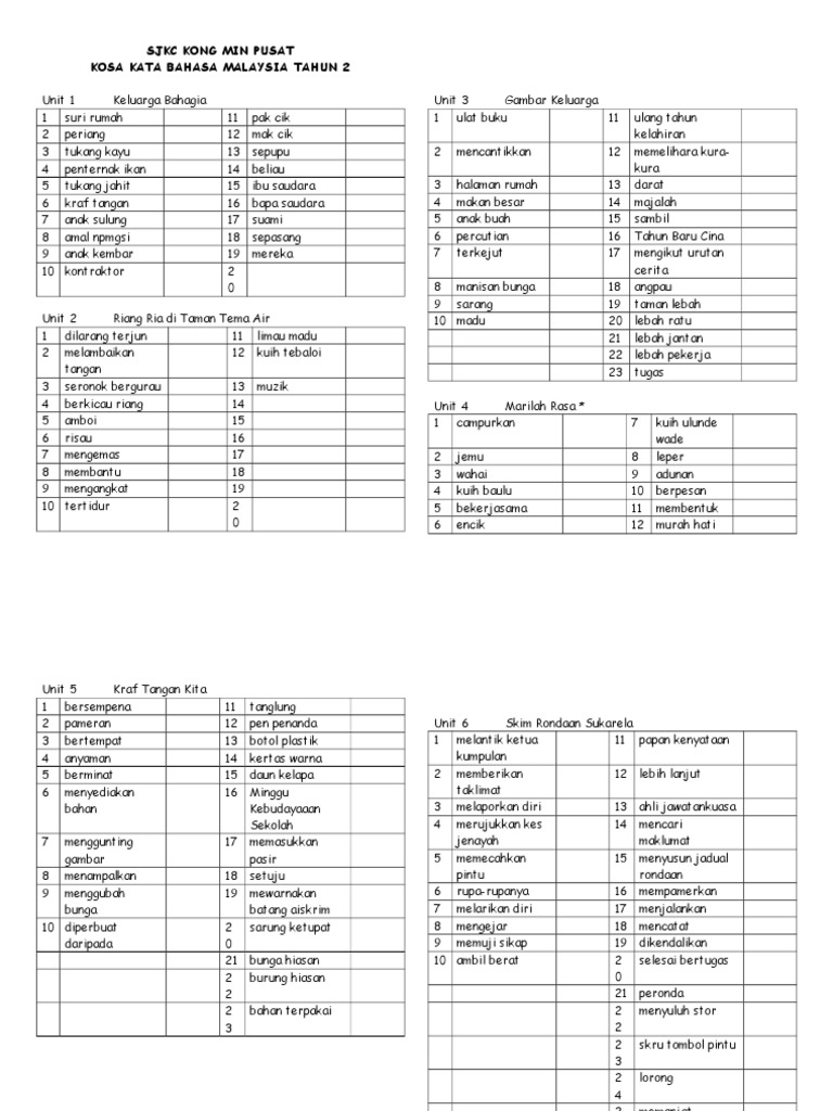 Contoh Kosa Kata Tahun 2